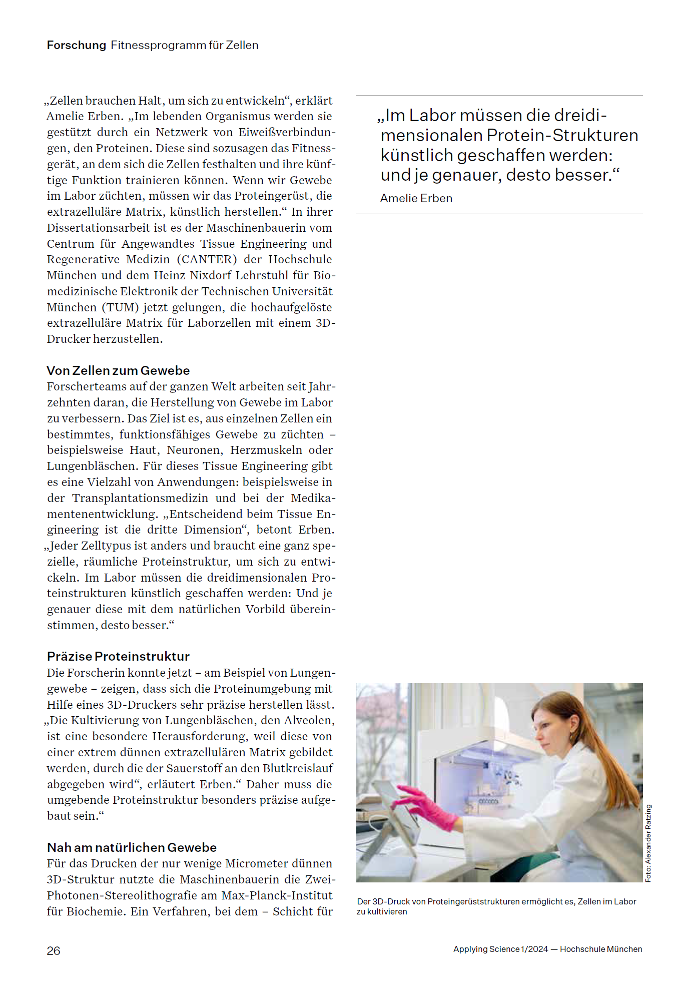 Over a period of more than two years, I was commissioned by the Munich University of Applied Sciences to conceptualize and photograph a wide range of editorial and reportage imagery, with a particular focus on the university’s in-house science magazine, Applying Science. I was responsible not only for developing visual narratives but also for the photographic documentation of research, innovation, and academic life on campus. My work aimed to translate complex scientific topics into accessible and visually engaging stories for a broader audience. The following is a curated selection of published articles, each accompanied by original photographic material, reflecting the diversity and depth of the editorial projects I contributed to over the years.